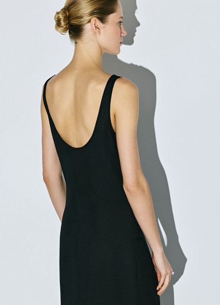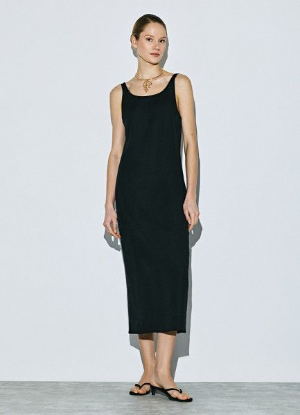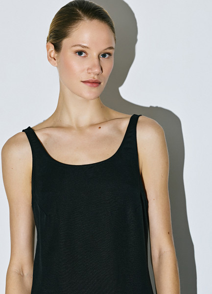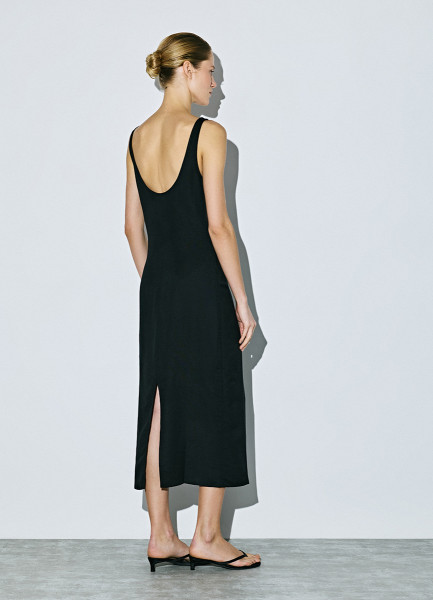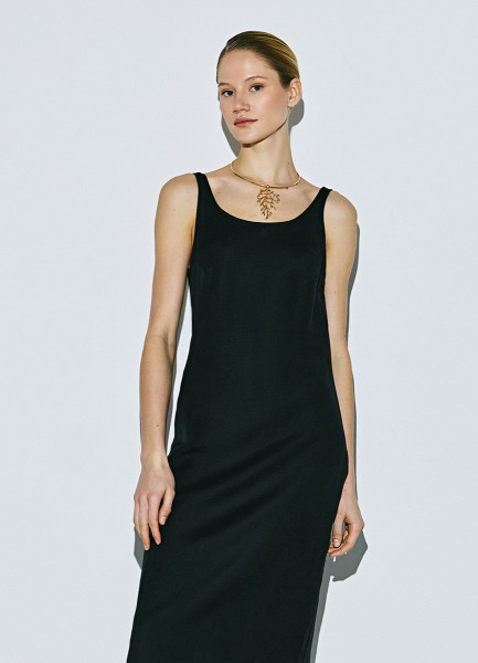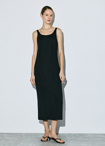 Льняное платье на широких бретелях, Черный