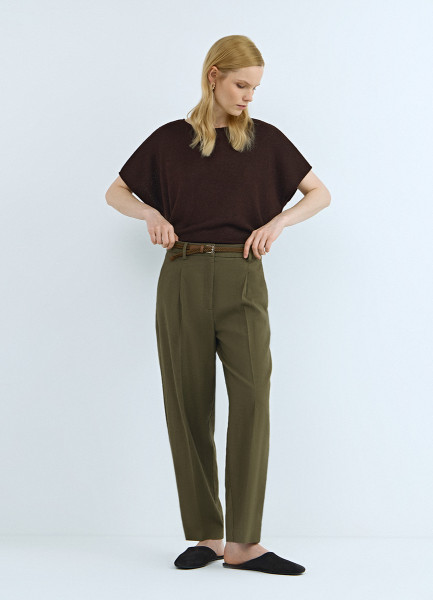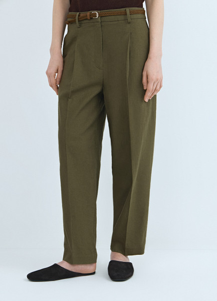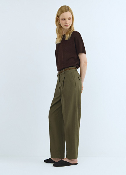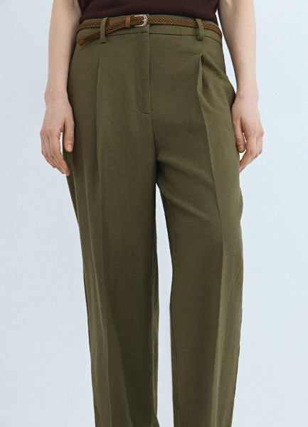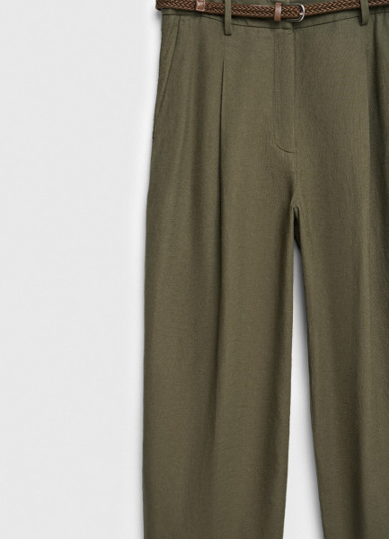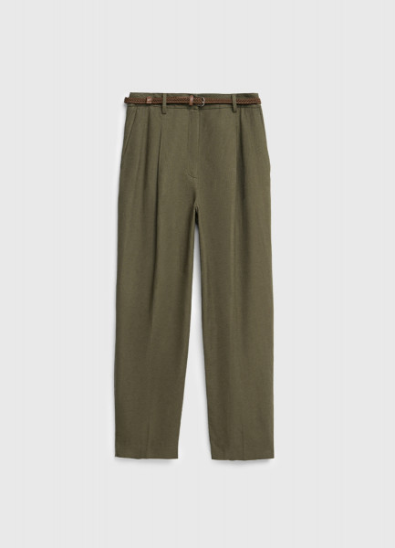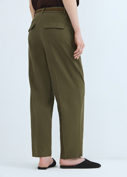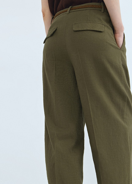 Зауженные брюки с поясом, Зеленый
