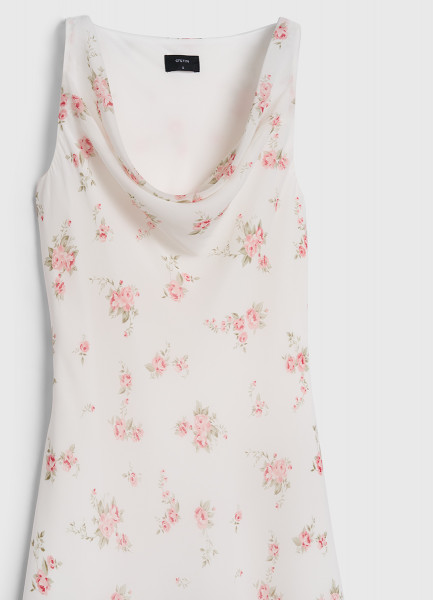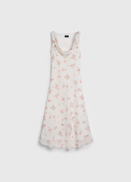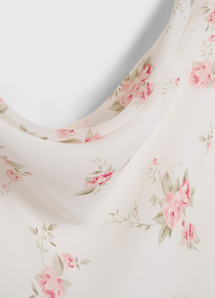 Шифоновое платье с драпированной горловиной, Белый