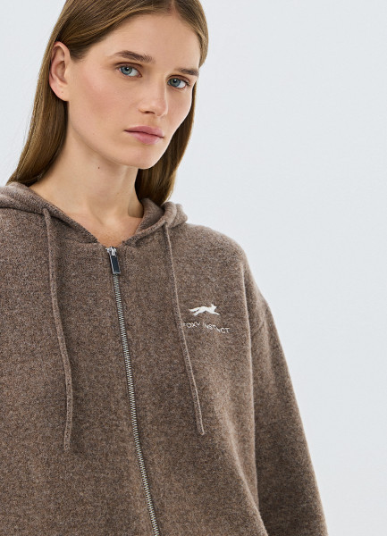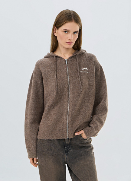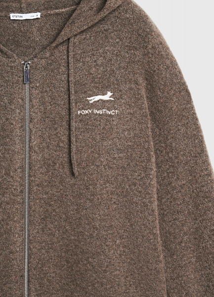Кардиган на молнии из пряжи с шерстью, Коричневый