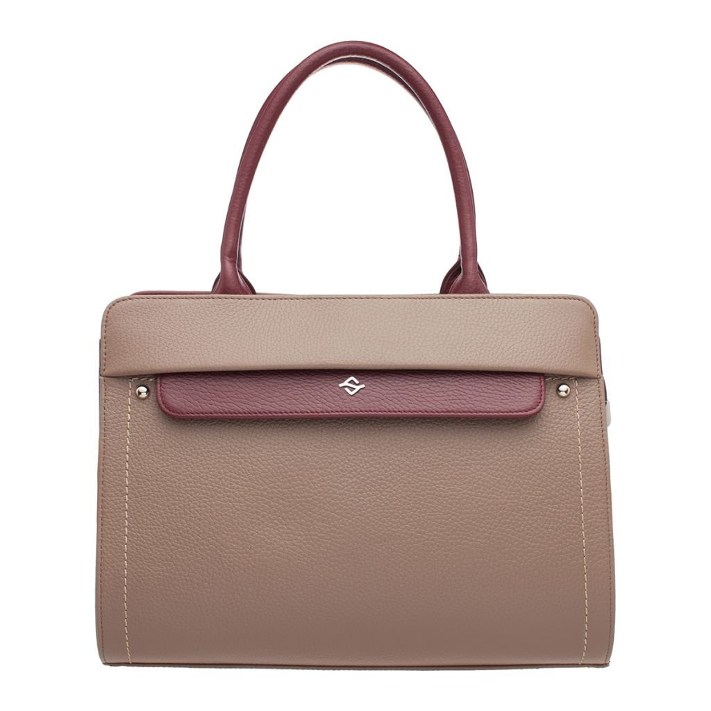 <p>Женская сумка Darnley Taupe выполнена из натуральной, высококачественной кожи коричневого цвета (цвет "тауп") с бордовыми вставками.</p>