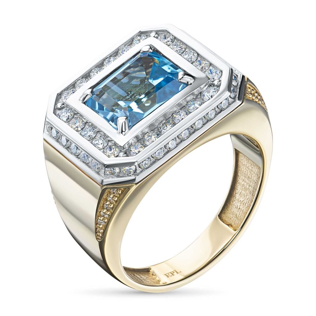 Мужское кольцо из белого золота с бриллиантами и топазом э4143кц03200354