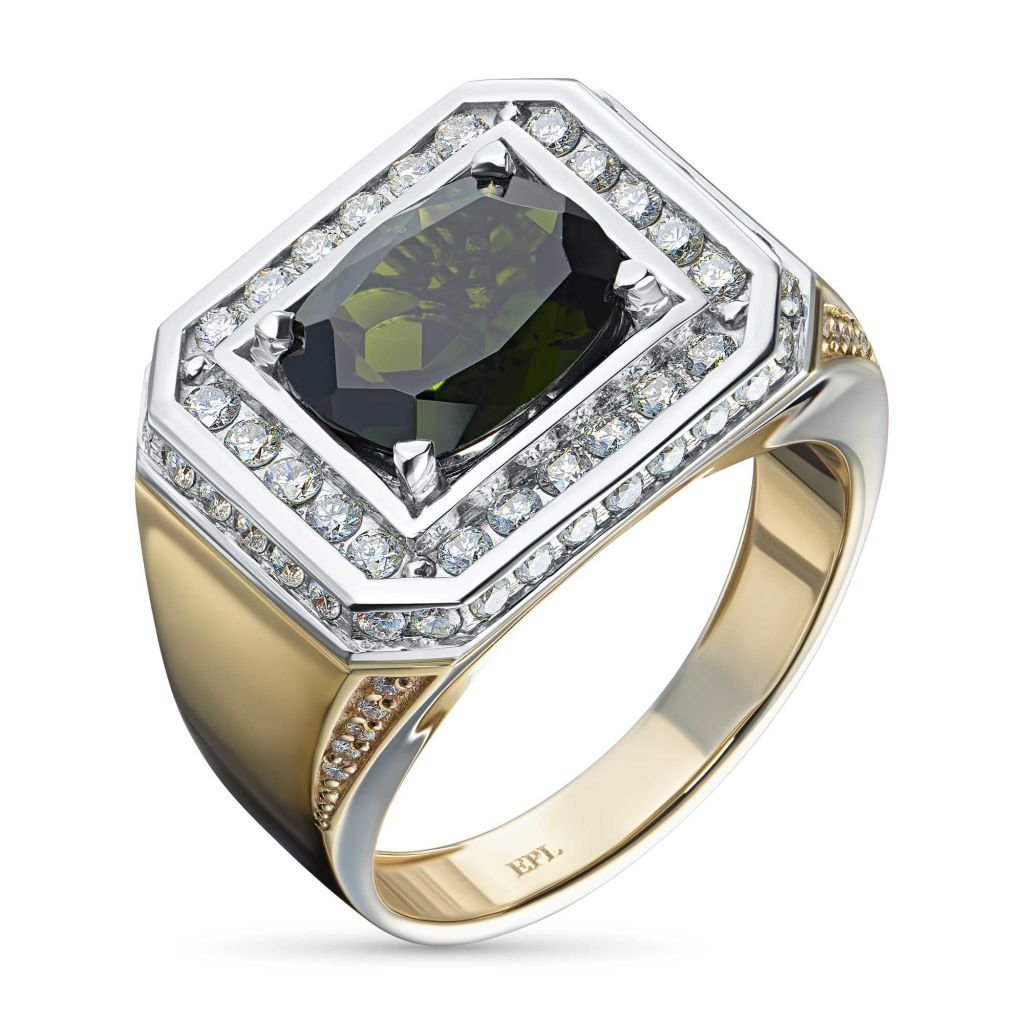 Мужское кольцо из белого золота с бриллиантами и хромдиопсидом э4136кц03200354