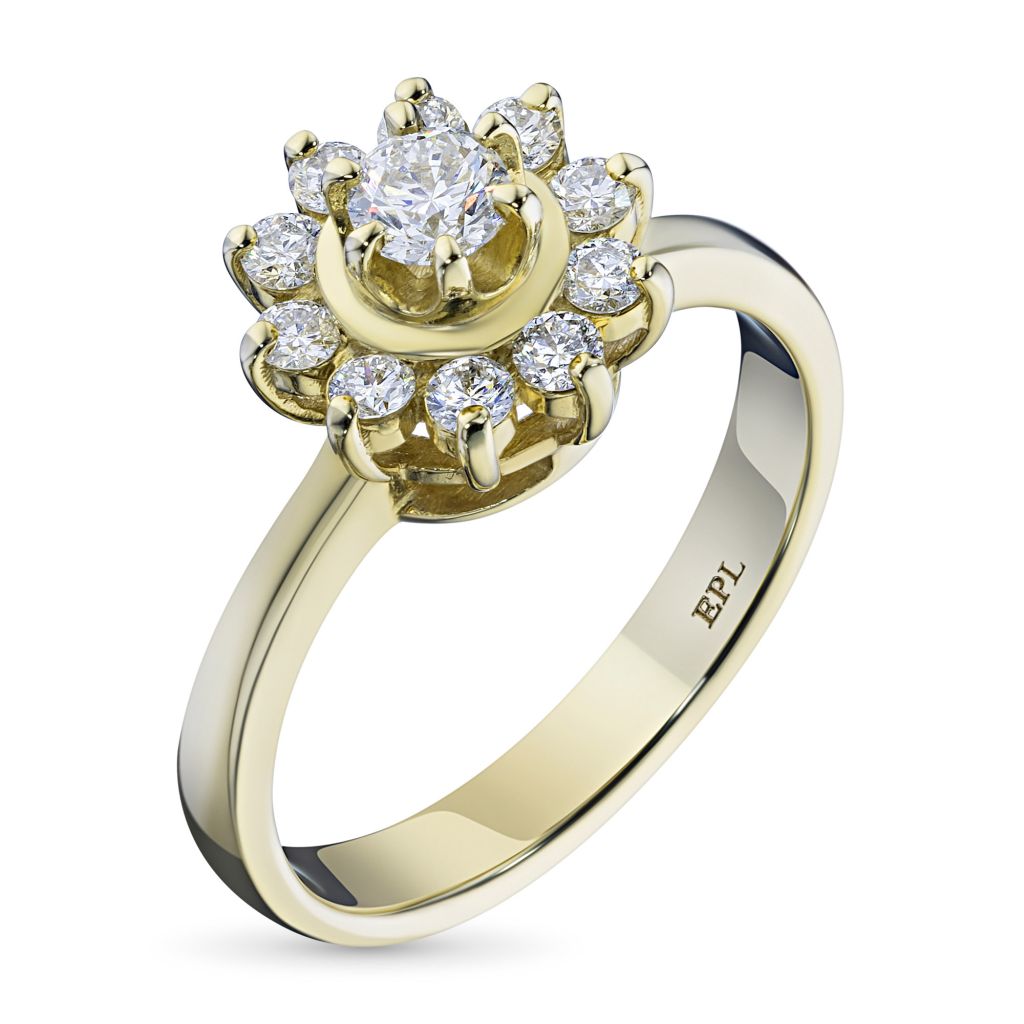 Классическое кольцо из желтого золота с бриллиантами э0301кц07153800