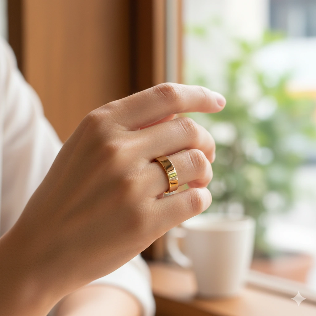 Инновационная конструкция обеспечивает безупречную посадку на палец. Кольцо с комфортной посадкой создано с учётом анатомических особенностей, что делает его ношение максимально комфортным в течение всего дня.