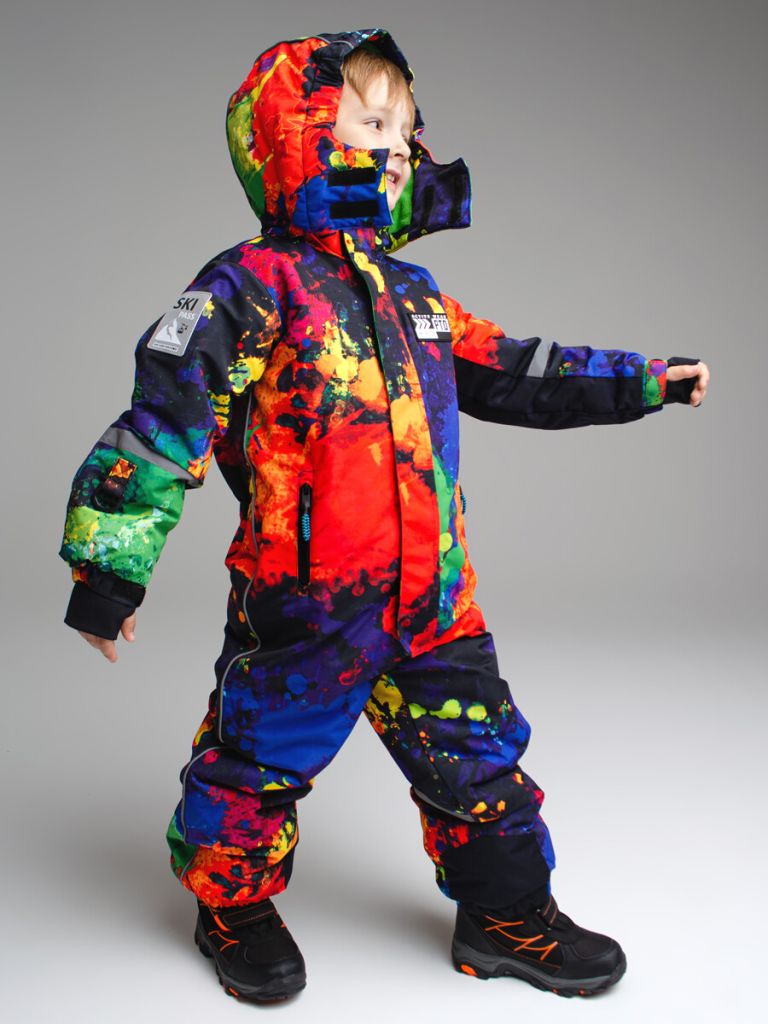 Мембранный материал делает этот яркий и модный комбинезон непромокаемым: мембрана не пропускает влагу снаружи, но выводит её изнутри, что крайне важно во время подвижных игр и занятий спортом.