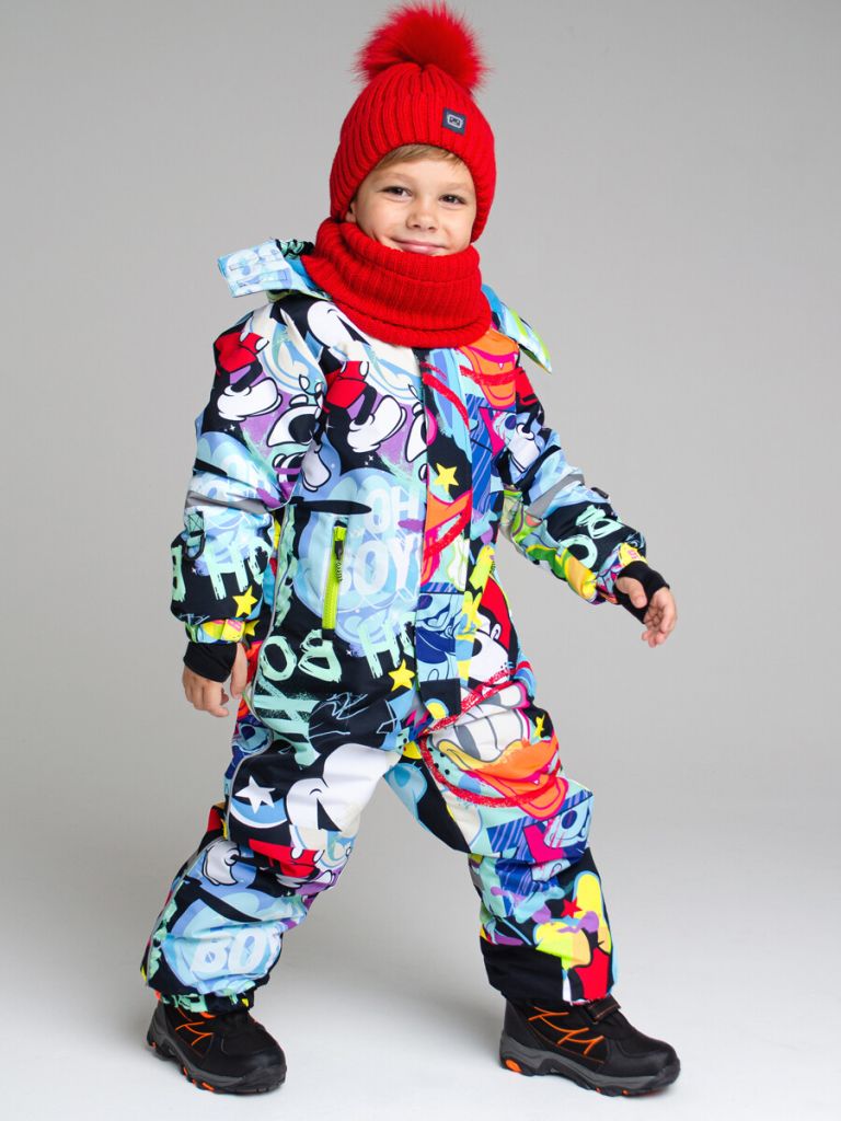 Мембранный материал делает этот яркий и модный комбинезон непромокаемым: мембрана не пропускает влагу снаружи, но выводит её изнутри, что крайне важно во время подвижных игр и занятий спортом.