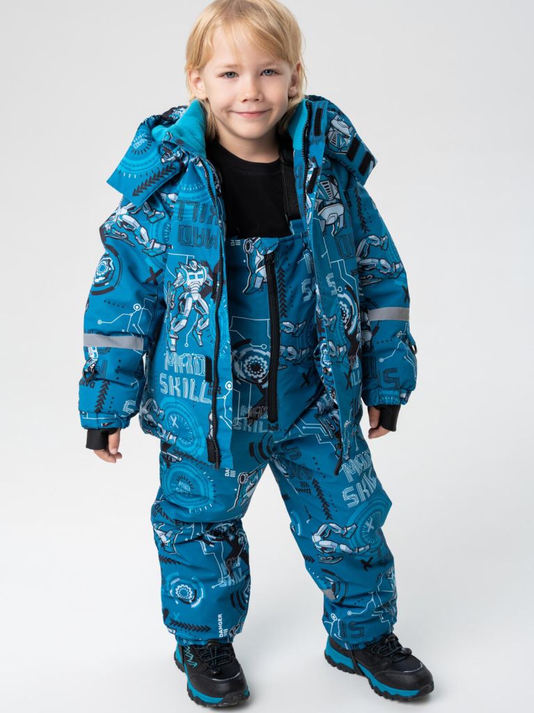 Детский зимний мембранный комплект для мальчика от PlayToday — идеальное решение для холодного сезона с температурным режимом от –5 до –20 °C. В комплект входят куртка и полукомбинезон, которые обеспечивают надежную защиту от ветра, снега и мороза, а также комфорт при активных играх и прогулках.