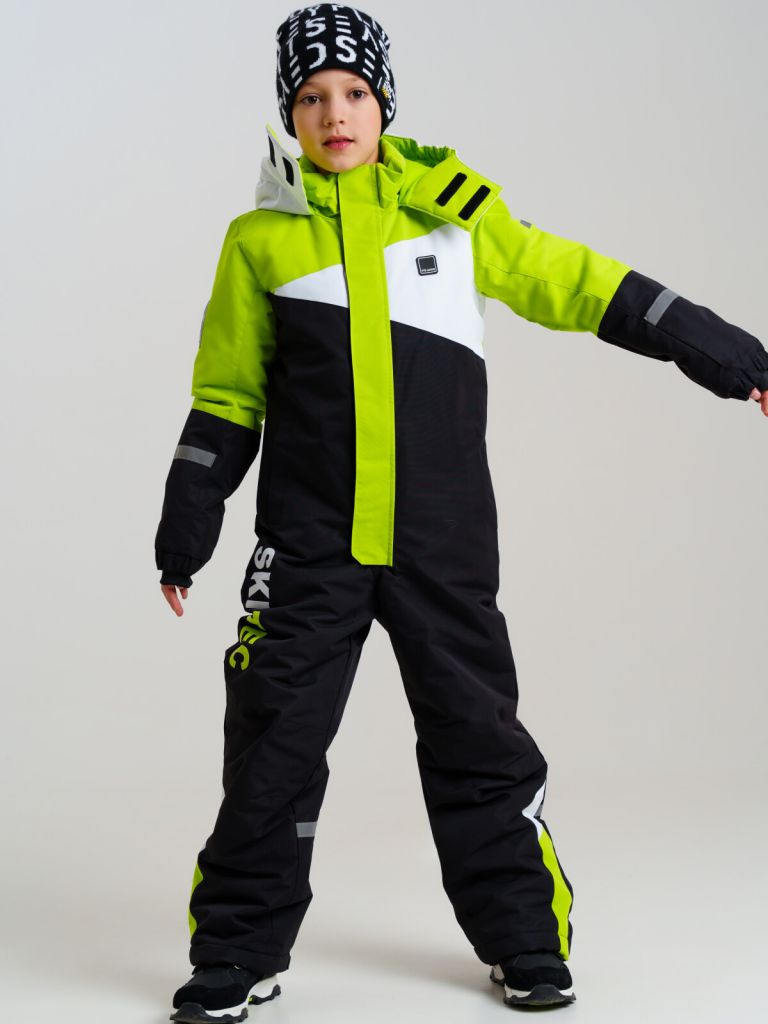 Мембранный материал делает этот яркий и модный комбинезон непромокаемым: мембрана не пропускает влагу снаружи, но выводит её изнутри, что крайне важно во время подвижных игр и занятий спортом.