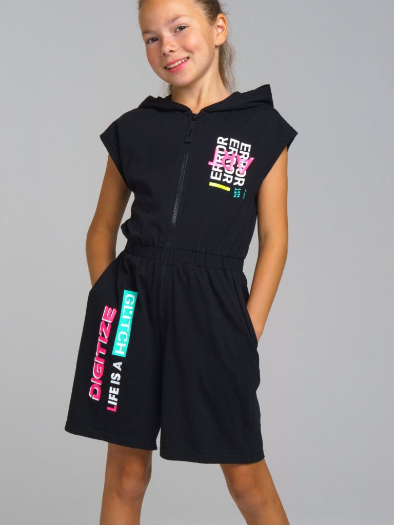 Комбинезон-ромпер из качественного и приятного на ощупь трикотажа джерси. Высокое содержание хлопка 95%. Благодаря наличию эластана в составе ткани, изделие проще в уходе и держит форму. Застежка на молнию. Капюшон.
