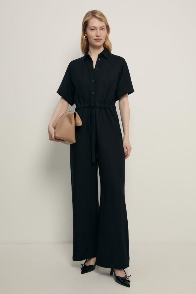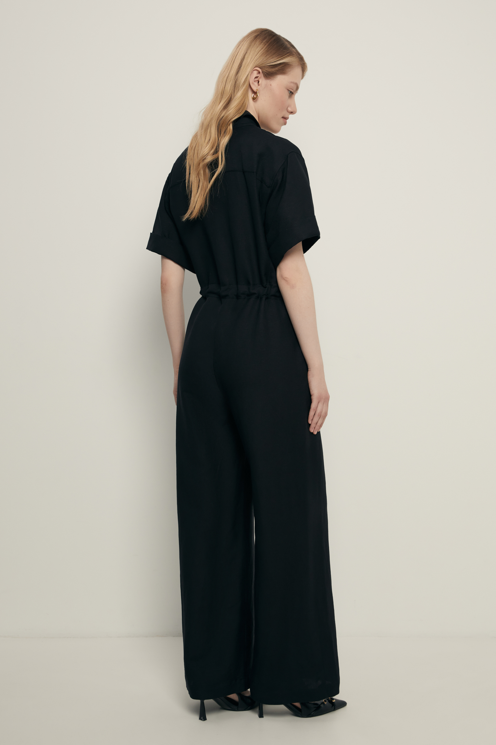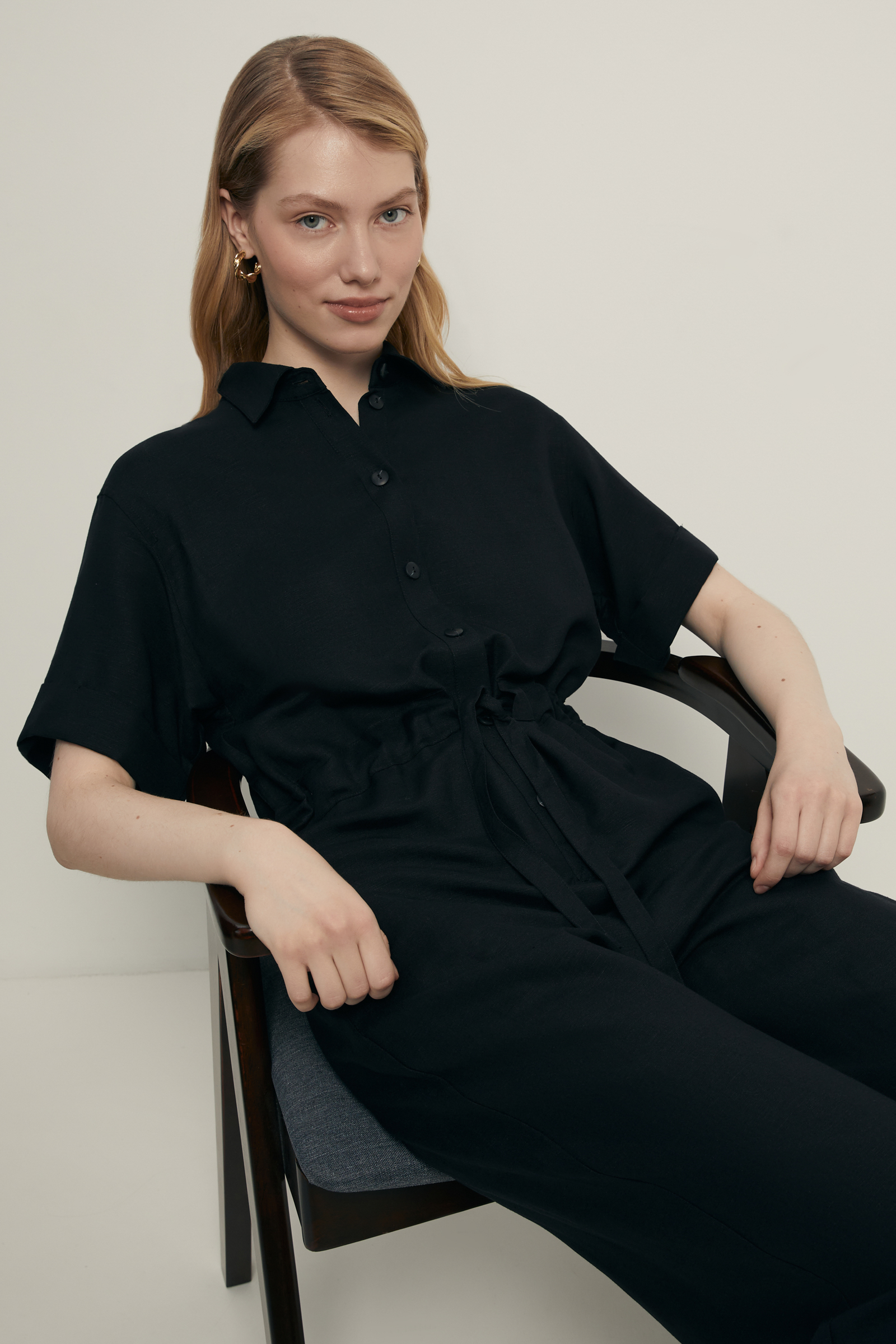 Комбинезон с поясом на кулиске и добавлением льна