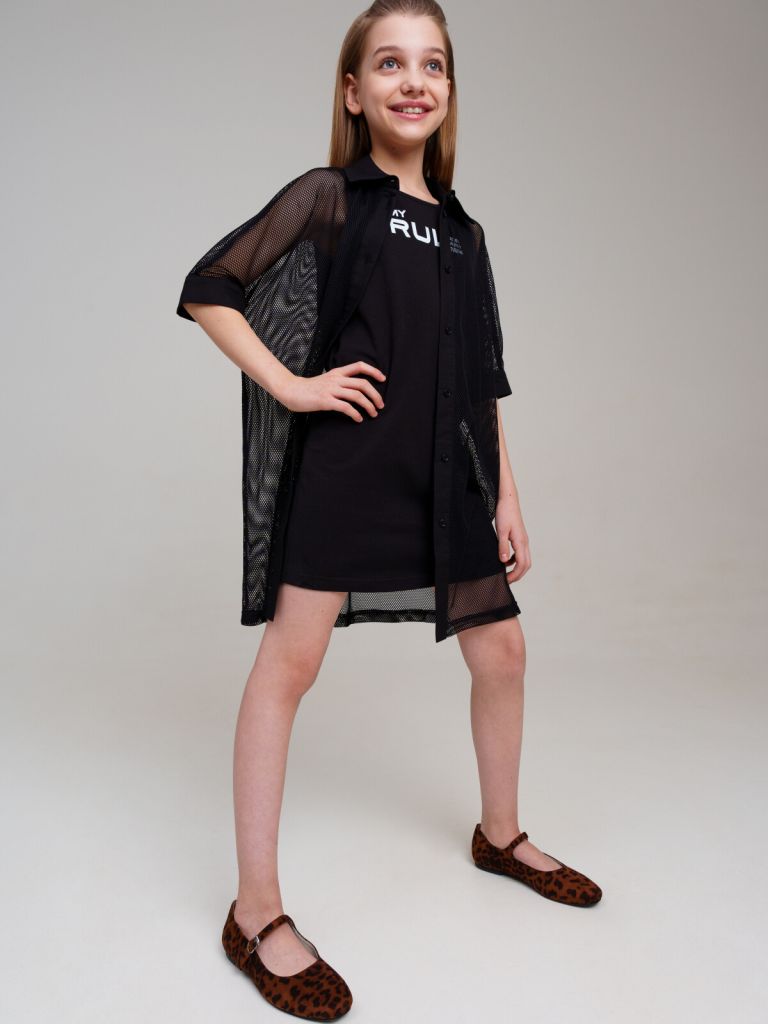 Комплект для девочки подростка. Платье из эластичного и приятного на ощупь трикотажа джерси. Высокое содержание хлопка 95%. Благодаря наличию эластана в составе ткани изделие держит форму и меньше мнется. Туника из сетки. Застежка на пуговицы. Модель выполнена из качественного и приятного на ощупь трикотажа.