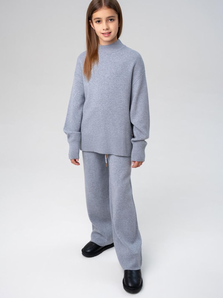 Вязаный серый трикотажный костюм для девочки подростка от PlayToday — это универсальный образ, который сочетает комфорт и стиль. В набор входят мягкий джемпер и прямые брюки с поясом на резинке и декоративным шнурком. Такой костюм станет практичной основой для повседневного гардероба девочки.