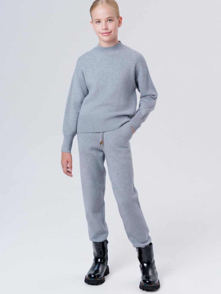 Вязаный серый трикотажный костюм для девочки подростка от PlayToday — это универсальный образ, который сочетает комфорт и стиль. В набор входят мягкий джемпер и прямые брюки с поясом на резинке и декоративным шнурком. Такой костюм станет практичной основой для повседневного гардероба девочки.