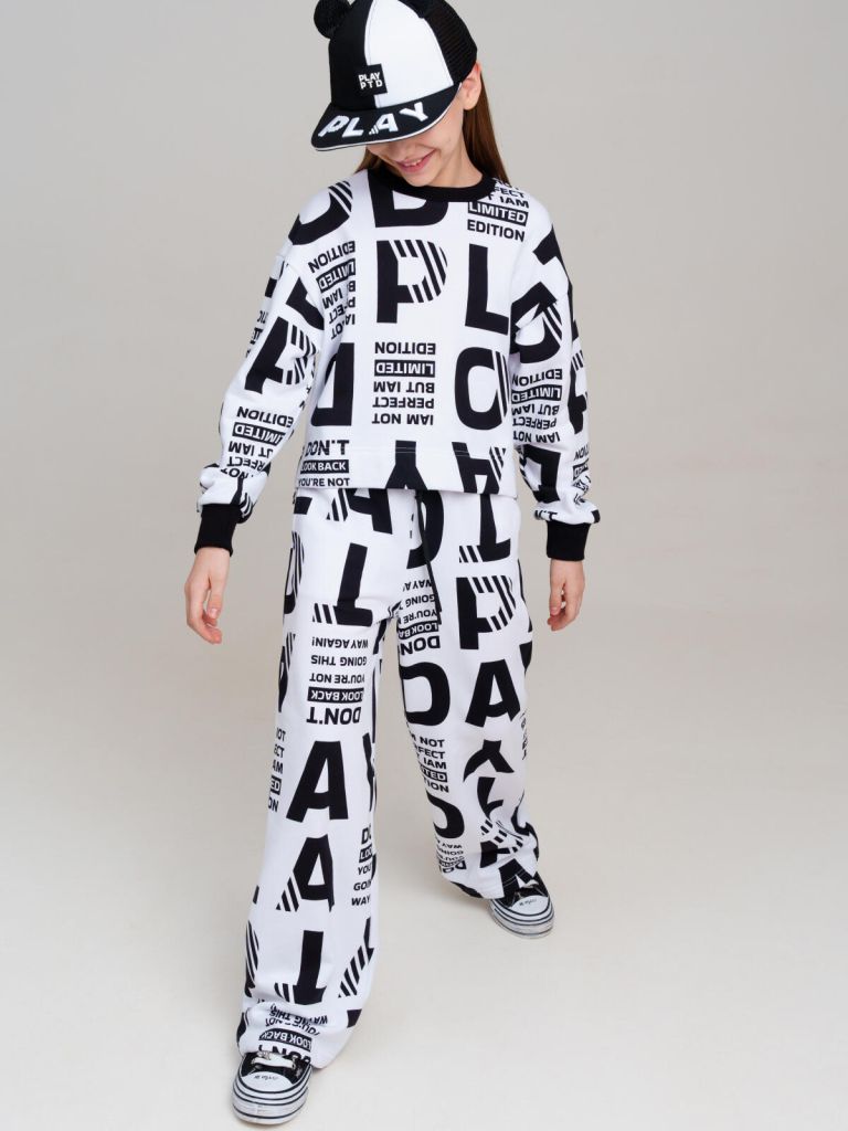 Костюм для девочки подростка. Свитшот, брюки с высоким содержанием хлопка. Брюки на резинке со шнурком. Функциональные боковые карманы. Модель выполнена из качественного и приятного на ощупь трикотажа.