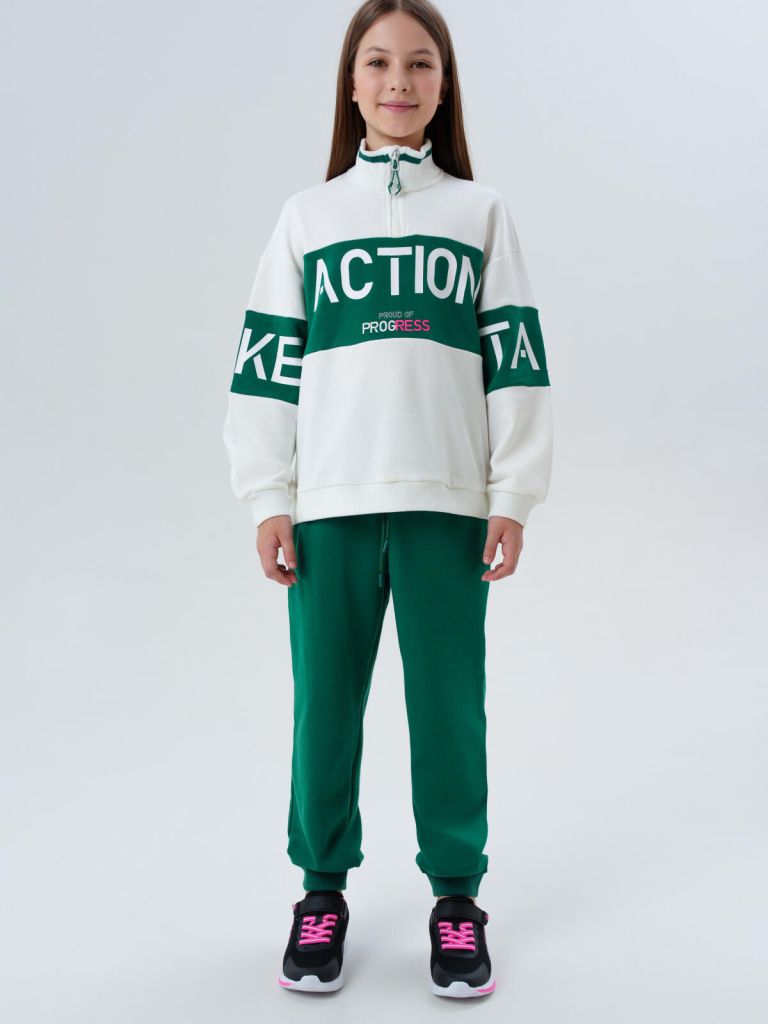 Модный зеленый спортивный костюм оверсайз в школу и на физкультуру для девочки от PlayToday — комфортное, стильное и практичное решение на каждый день. Отличный выбор для активной, уверенной в себе школьницы.
