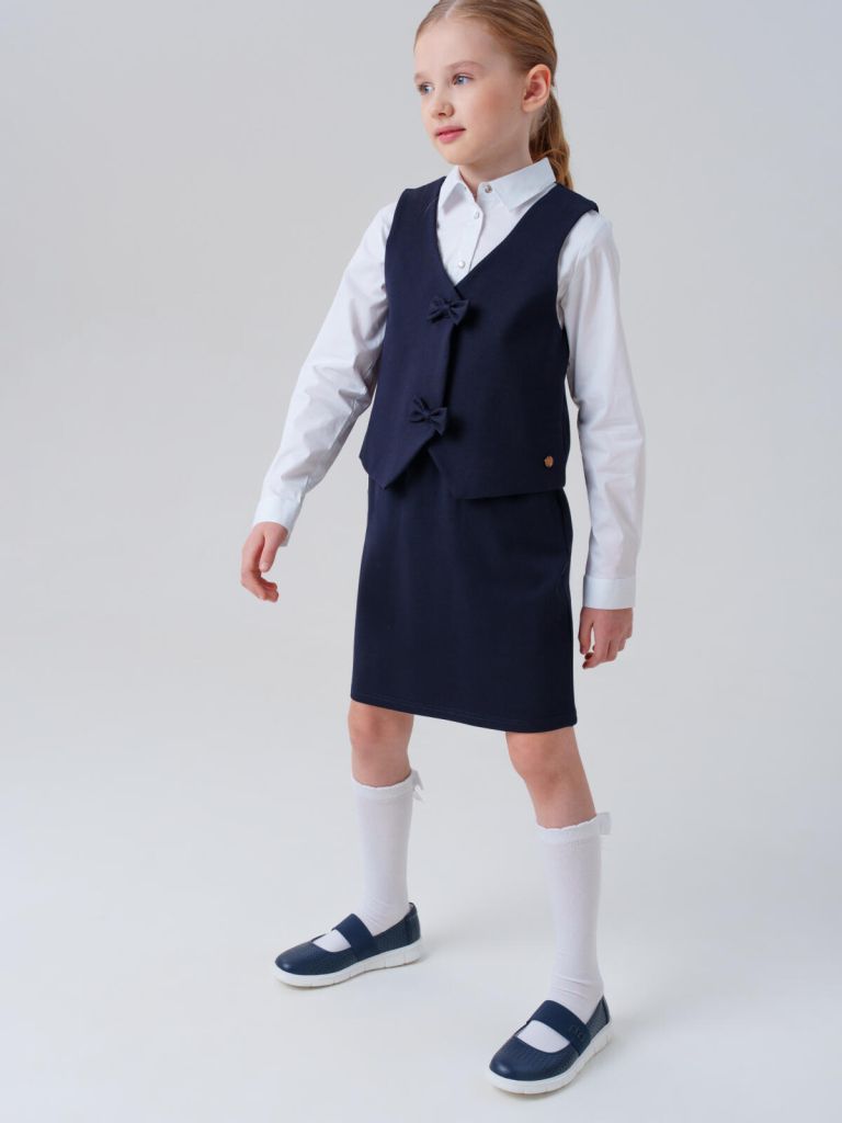 Элегантный строгий жилет на кнопках удобно надевается, подчёркивает силуэт и придаёт образу собранность. Универсальная школьная юбка на резинке мягко сидит по талии, не сковывает движений, а карманы делают модель ещё более практичной.