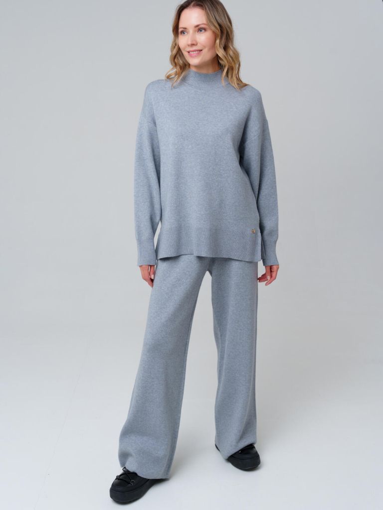 Вязаный серый женский трикотажный костюм от PlayToday — это универсальный образ, который сочетает комфорт и стиль. В набор входят мягкий джемпер и прямые брюки с поясом на резинке и декоративным шнурком. Такой костюм станет практичной основой для повседневного гардероба.