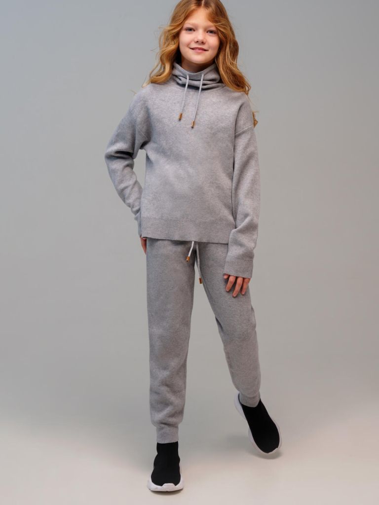 Вязаный оверсайз костюм для девочки подростка. Джемпер и брюки с содержанием вискозы. Штаны на резинке со шнурком. Модель из капсульной коллекции BLACK CHIC (БЛЭК ШИК). Соберите полный образ в едином стиле!