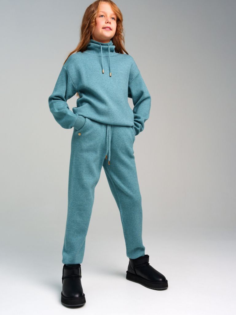 Вязаный оверсайз костюм для девочки подростка. Джемпер и брюки с содержанием вискозы. Штаны на резинке со шнурком. Модель из капсульной коллекции BLACK CHIC (БЛЭК ШИК). Соберите полный образ в едином стиле!