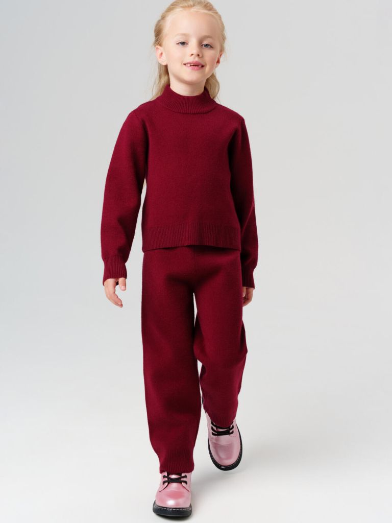 Детский бордовый вязаный костюм для девочки от PlayToday — универсальный тёплый дуэт, который отлично подойдёт как для дома, так и для прогулок в прохладное время года. В комплект входят мягкий однотонный джемпер с воротом-стойкой и комфортные трикотажные брюки с высокой посадкой. Комплект выполнен из гипоаллергенного смесового полотна с высоким содержанием вискозы, благодаря чему изделие остаётся мягким, эластичным и не колется даже при длительном ношении. Приятная к телу фактура не раздражает кожу, подходит для чувствительных детей.