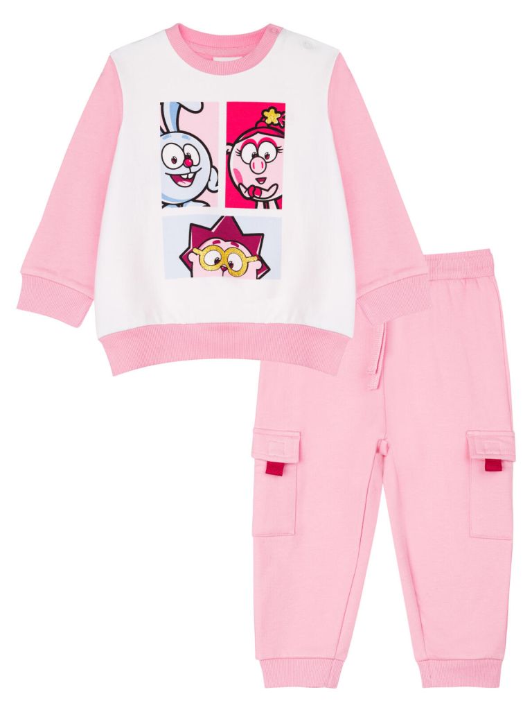 Костюм детский из футера без начеса для девочки. Модный свитшот с высоким содержанием хлопка. Удобные штаны на резинке со шнурком. Модель из капсульной коллекции СМЕШАРИКИ. Соберите полный образ в едином стиле!