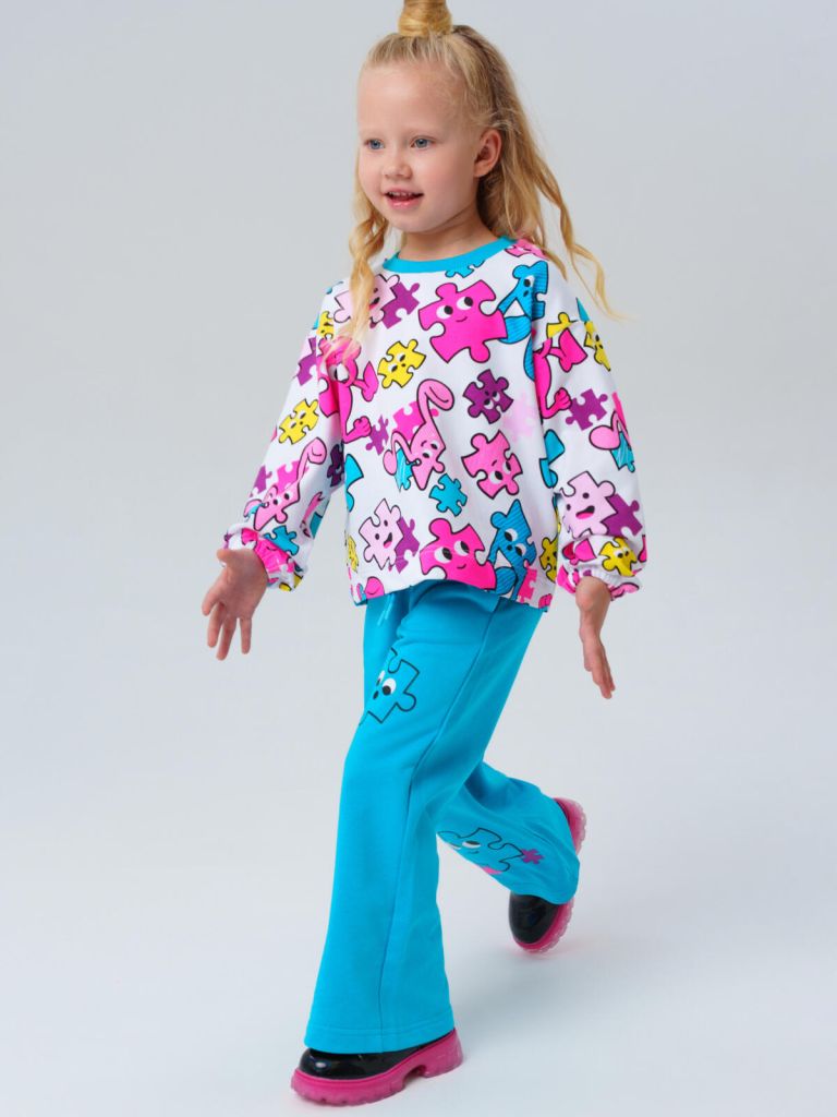 Детский трикотажный спортивный костюм для девочки от PlayToday: стильный свитшот и удобные брюки на резинке. Яркий принт делает образ модным, а мягкий футер без начёса обеспечивает комфорт каждый день — в детском саду, на прогулке или дома.