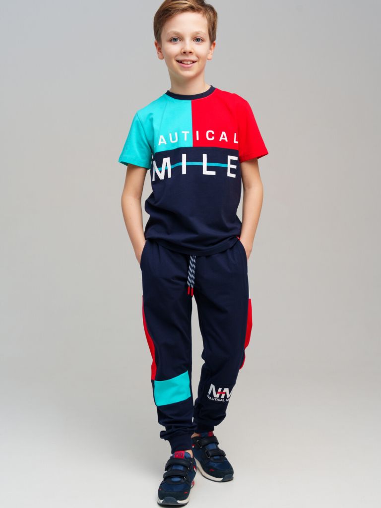 Костюм для мальчика подростка. Комплект: футболка, брюки. Высокое содержание хлопка 95%. Штаны на резинке со шнурком. Боковые карманы. Модель выполнена из качественного и приятного на ощупь трикотажа.