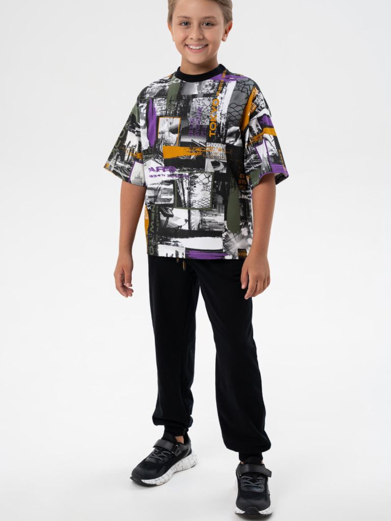 Стильный трикотажный костюм для мальчика подростка от PlayToday — практичный и удобный выбор для школы, прогулок и активного отдыха. В набор входит яркая футболка оверсайз с модным принтом и комфортные спортивные брюки на резинке, которые обеспечивают свободу движений и удобство в течение всего дня.