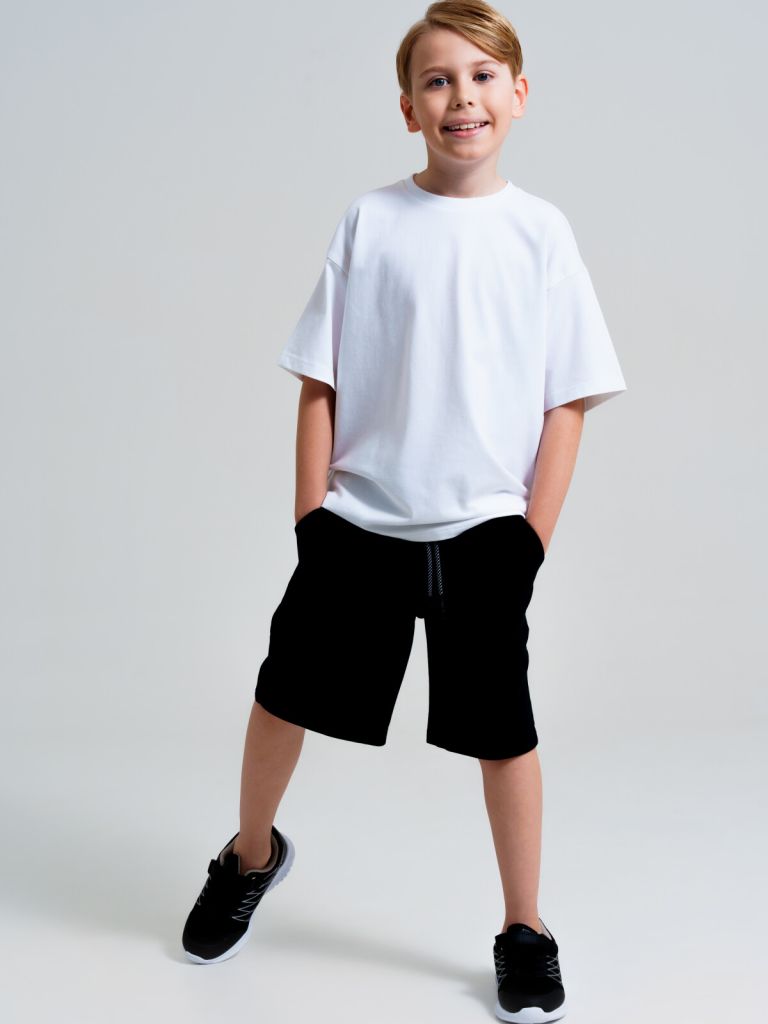 Этот подростковый черный комплект для физкультуры разработан с учётом школьного дресс-кода и спортивной активности мальчиков. Шорты с поясом на резинке и утягивающим шнуром не сползают, футболка свободного кроя не сковывает движений — ребёнку будет комфортно на каждом занятии.