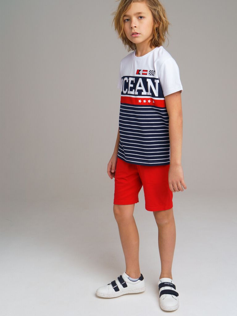 Комплект футболка и шорты из качественного эластичного и приятного на ощупь трикотажа. Эластичный пояс с кулиской позволяет легко надевать брюки и утягивать до комфортной посадки в зависимости от комплекции ребенка. Функциональные карманы.