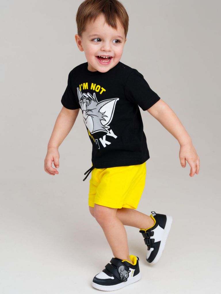 Костюм детский для мальчика. Комплект: футболка, шорты с высоким содержанием хлопка 95%. Благодаря наличию эластана в составе ткани изделие проще в уходе и держит форму. Шорты на резинке со шнурком. Боковые карманы.