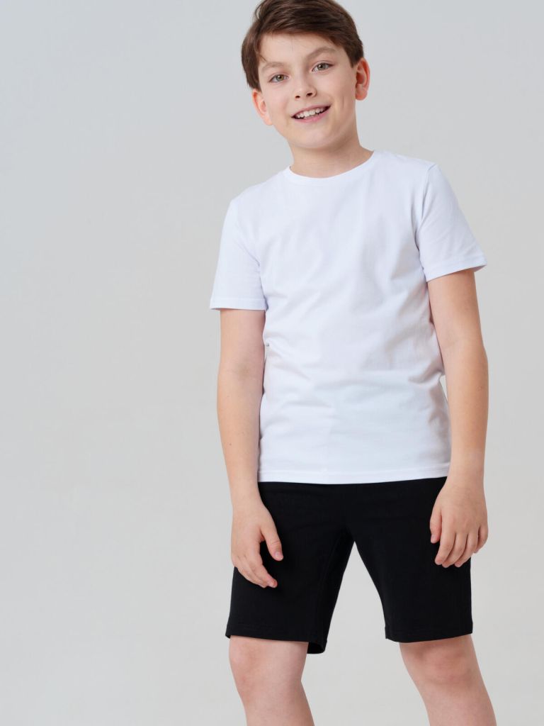 Такая детская физкультурная форма для мальчиков станет удобной основой гардероба школьника. Базовые черные шорты для спорта комфортно сидят на талии, а универсальная белая футболка для подростков подходит как для активных движений, так и для повседневных задач. Удобная и компактная сумка мешок помогает носить комплект с собой и хранить всё в порядке.