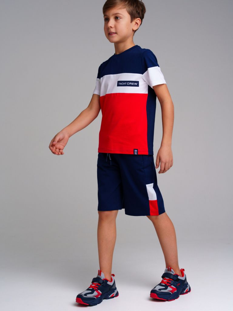 Комплект: футболка, шорты из качественного и приятного на ощупь трикотажа джерси. Высокое содержание хлопка 95%. Благодаря наличию эластана в составе ткани изделие проще в уходе и держит форму. Regular fit. Эластичный пояс со шнурком. Функциональные карманы в боковых швах.