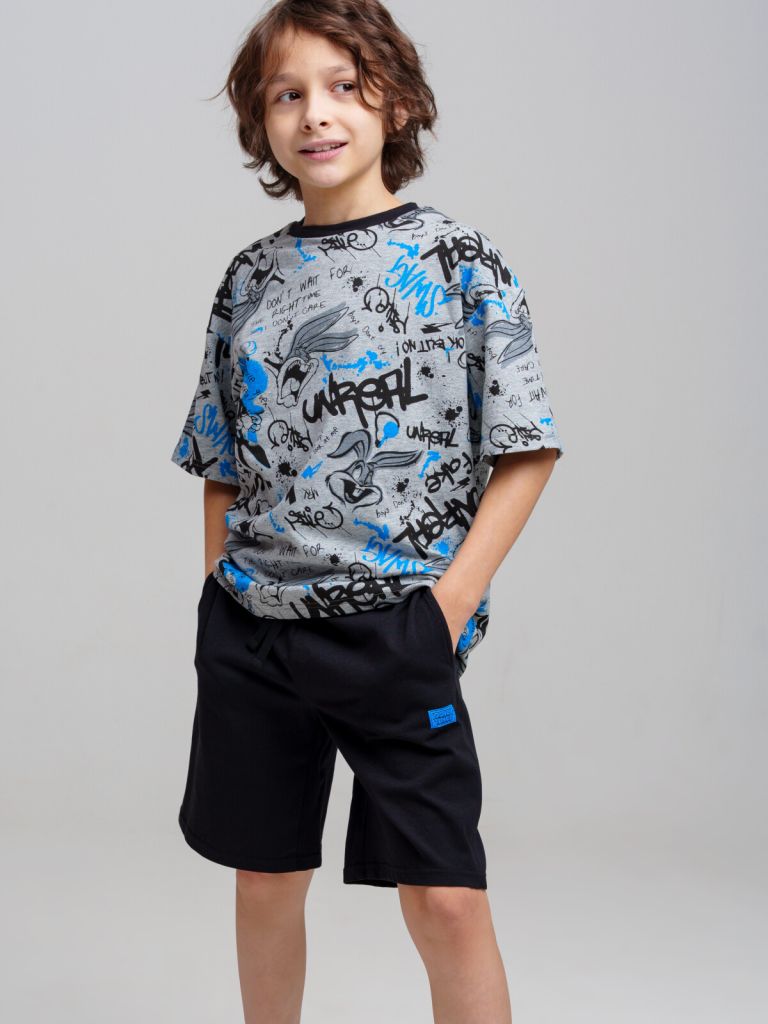 Пижама для мальчика подростка. Футболка и шорты из эластичного и приятного на ощупь трикотажа. Шорты на резинке со шнурком. Шорты с карманами в боковых швах. Высокое содержание хлопка 95%. Благодаря наличию эластана в составе ткани изделие держит форму и меньше мнется. Модель выполнена из качественного и приятного на ощупь трикотажа.