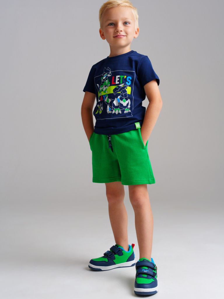 Костюм детский для мальчика. Футболка детская с высоким содержание хлопка. Шорты на резинке с утяжкой пояса шнурком. Боковые карманы. Модель из капсульной коллекции DINO CLUB (ДИНО КЛАБ). Соберите полный образ в едином стиле! Костюм будет актуален для детского сада, в садик.