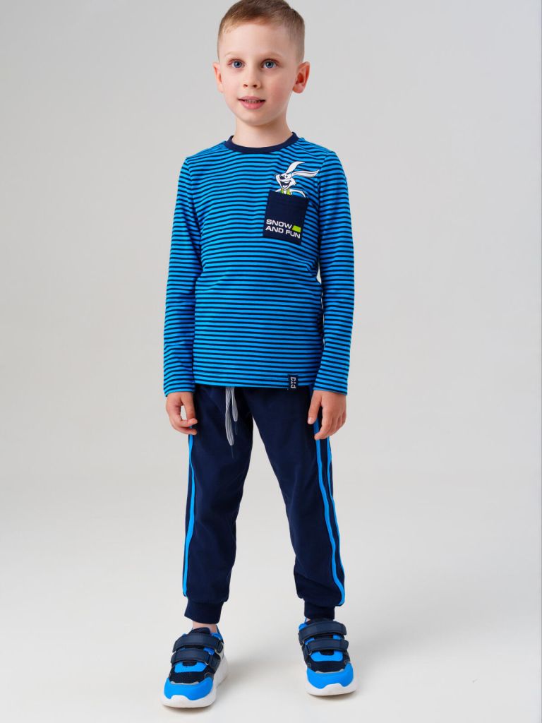 Лонгслив в полоску гармонично сочетается с джинсами, шортами или спортивными брюками, что делает комплект универсальным решением для детского гардероба. Брюки можно комбинировать с худи, толстовкой или футболкой PlayToday. Такой костюм легко дополнить кроссовками или лёгкими ботинками для создания повседневного образа.