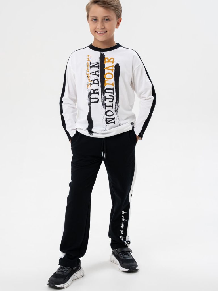 + современный декор-принт на футболке и брюках — модный акцент, подчеркивающий стиль подростка