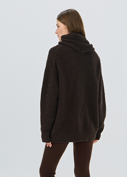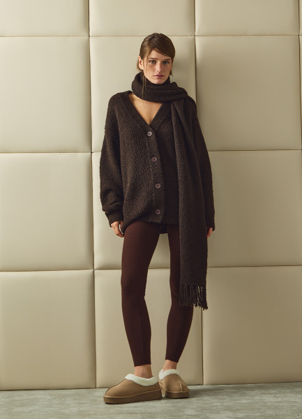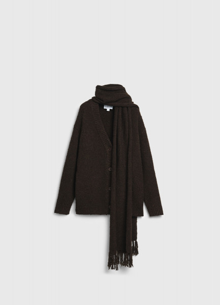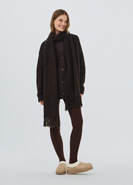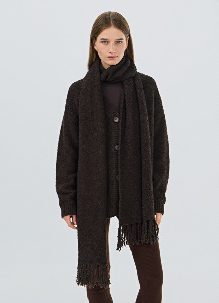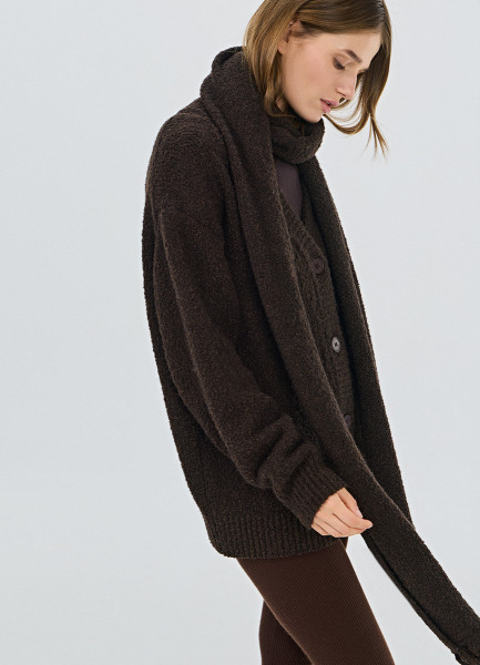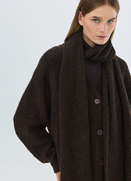 Кардиган оверсайз с шарфом, Коричневый