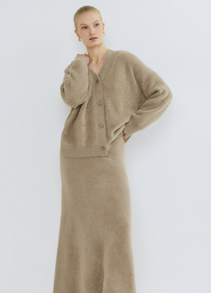 Трикотажная юбка из пушистой пряжи, Коричневый