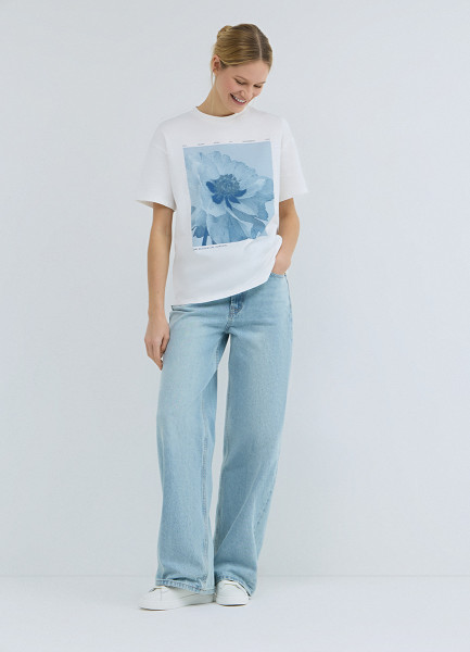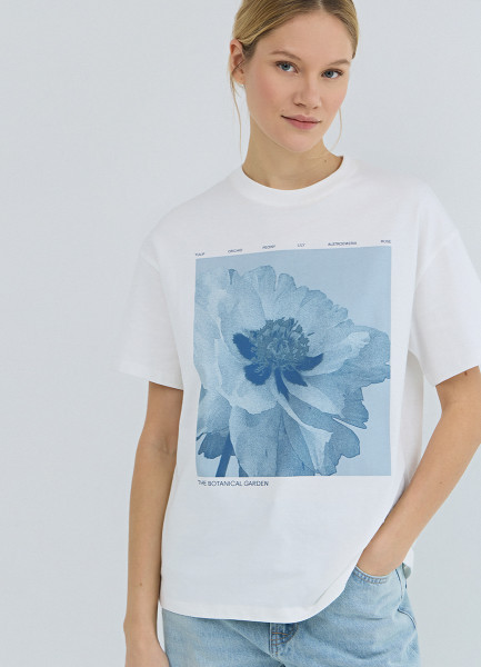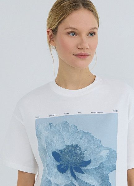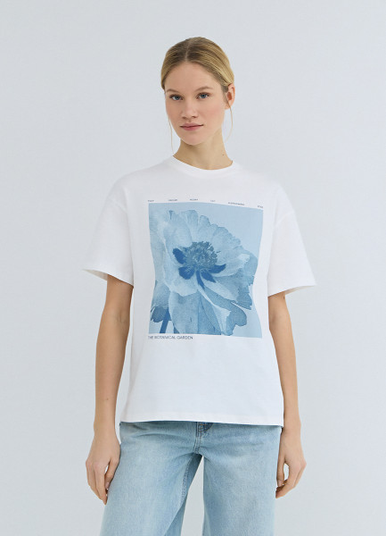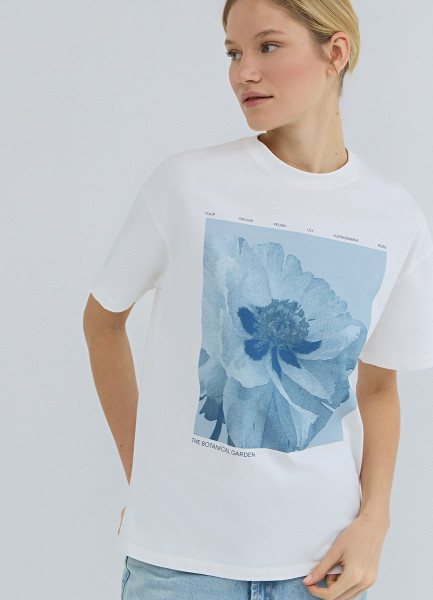 Футболка с цветочным принтом, Белый