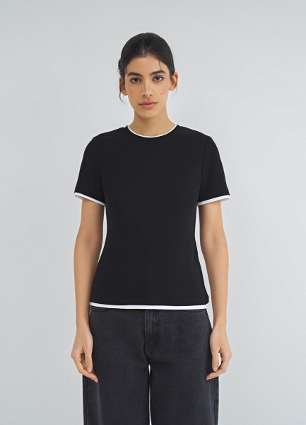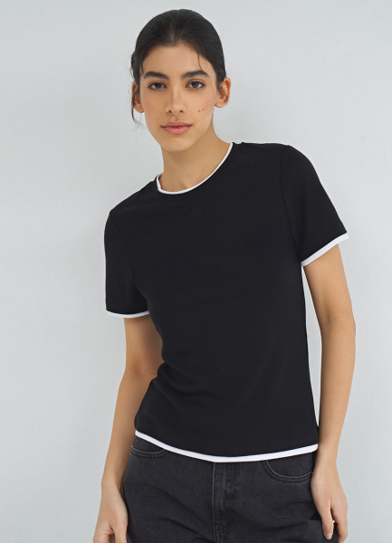 Футболка с контрастной окантовкой, Черный