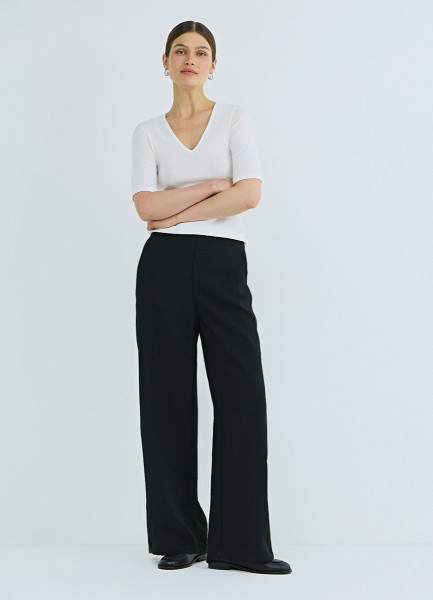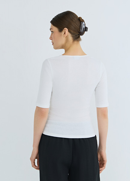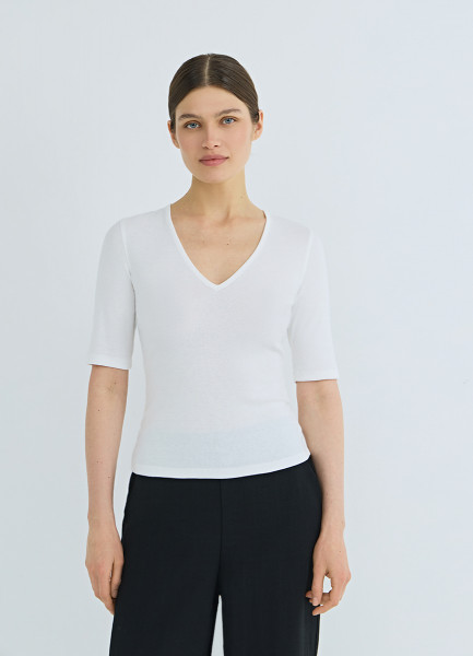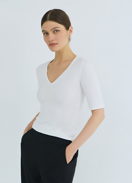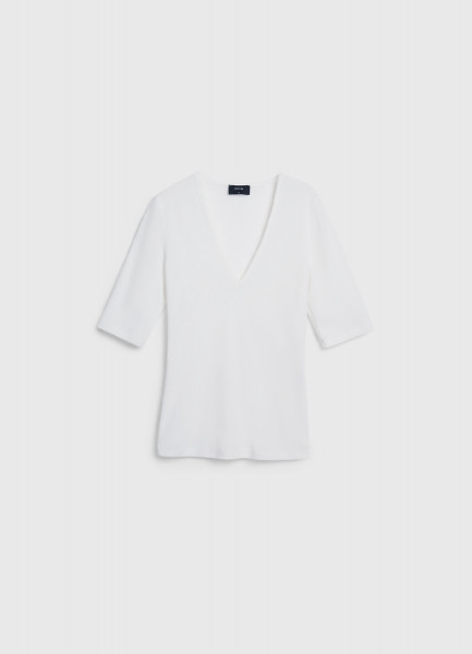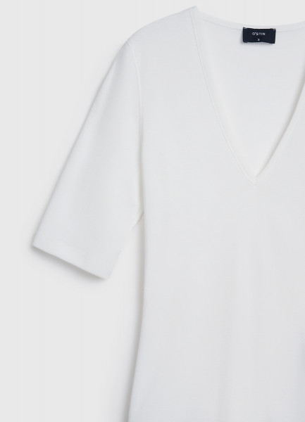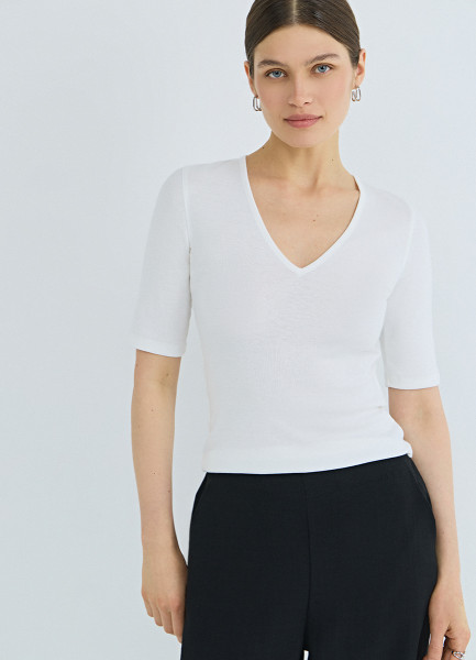 Футболка в рубчик с V-образной горловиной, Белый