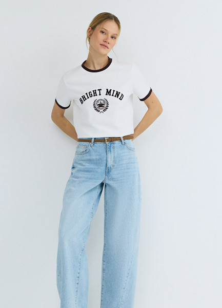 Футболка с контрастной отделкой, Белый