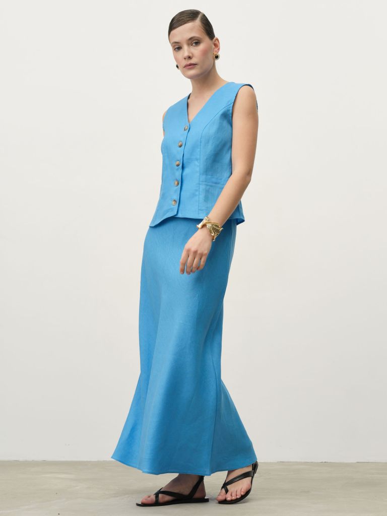 Погрузитесь в прохладу натурального льна с элегантной юбкой в оттенке аквамарин – идеальным решением для летнего гардероба. Выполненная из 100% натурального льна, эта модель обеспечивает непревзойденный комфорт даже в самые жаркие дни благодаря уникальным свойствам экологичного материала: воздухопроницаемости, гипоаллергенности и способности отводить влагу.Юбка отличается элегантным прямым кроем средней длины, который подчеркивает женственный силуэт, не сковывая движений. Высокая посадка визуально удлиняет ноги и формирует привлекательный контур фигуры. Изысканный оттенок аквамарин – освежающий и притягательный – станет ярким акцентом вашего образа, привнося нотку летней свежести. Функциональность этой модели впечатляет: юбка легко комбинируется как с деловыми блузами и рубашками для офисного лука, так и с футболками или топами для повседневных образов. Благодаря универсальному дизайну, она органично впишется в базовый гардероб и прослужит не один сезон, сохраняя первоначальный вид и форму. Натуральный лен с каждой стиркой становится только мягче и приятнее к телу, что делает эту юбку не только стильным, но и практичным приобретением. Особая структура ткани обеспечивает естественную терморегуляцию – прохладу в жару и комфорт в прохладную погоду.Дополните свой летний гардероб этой универсальной льняной юбкой и откройте для себя непревзойденный комфорт натуральных материалов в сочетании с элегантным дизайном. Создавайте стильные летние комплекты с минимальными усилиями!