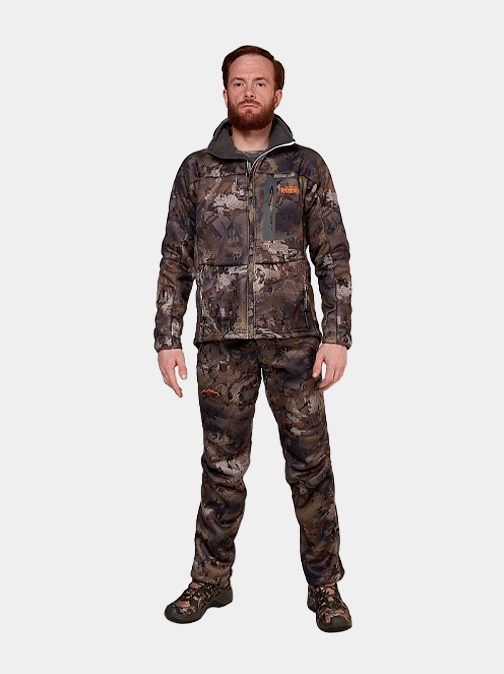 Костюм Remington Stalker Timber — один из самых бесшумных в коллекции Remington, подходит для охоты, рыбалки и туризма в межсезонье. Изготовлен из эластичной ткани с водоотталкивающей пропиткой DWR, он не шуршит и не сковывает движения. Флисовая подкладка удерживает тепло, способствует воздухообмену и быстро сохнет. Спинка куртки удлинена, защищая поясницу от ветра и холода.Во время работы над костюмом активно привлекались охотники и туристы — на практике проверялась каждая деталь, от посадки до вентиляции, чтобы достичь максимальной функциональности.Модель может использоваться как основной костюм в межсезонье или как утепляющий слой зимой. В капюшон встроена маска, выполненная в том же цвете, что и весь костюм, для дополнительной маскировки на охоте.Преимущества:Пропитка: используется водоотталкивающая пропитка DWR.Удобство: флисовая внутренняя часть, эластичная ткань, удлинённая спинка куртки.Функциональность: капюшон с интегрированной маской, возможность использовать как утепляющий слой.Цвет Timber: обеспечивает хорошее слияние с осенне-весенним лесом и кустарником.Температурный режим: от –5 до +15 °C.
