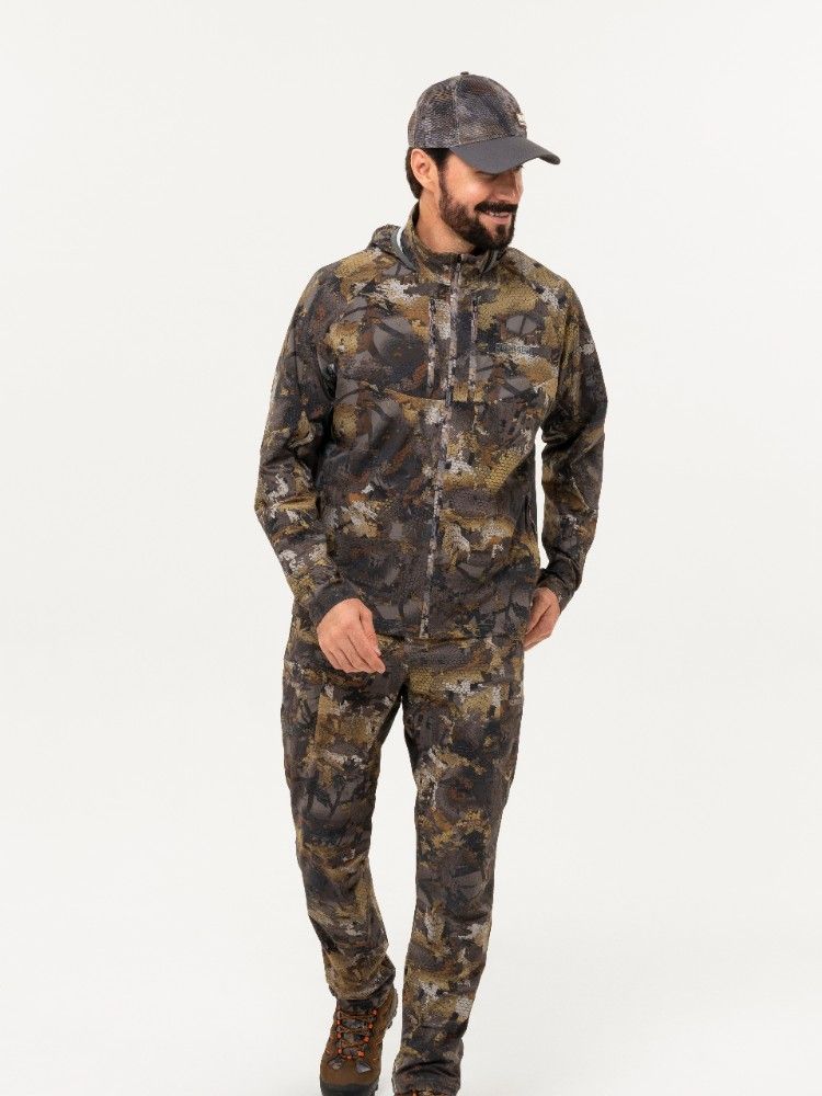 Костюм Remington Hot Summer Timber — один из самых легких летних костюмов в линейке Remington. Модель выполнена из нейлона с добавлением спандекса, обработанного водоотталкивающей пропиткой. Нейлон с технологией UPF 50+ защищает от ультрафиолетового излучения и обладает охлаждающим эффектом, обеспечивая комфорт при прямом солнечном воздействии Сетчатая ткань в области подмышек способствует циркуляции воздуха. Регулировки объема и зауженный крой брюк обеспечивают удобную посадку. На коленях предусмотрены карманы для защитных вставок. Удобные карманы позволяют сохранить личные вещи. Встроенный капюшон с маскировочной маской позволяет быстро замаскироваться и защититься от ветра и осадков. Костюм разработан совместно с охотниками и рыболовами для учета всех их потребностей.Преимущества:Легкость: один из самых легких летних костюмов.Охлаждающий эффект: нейлон защищает от ультрафиолетового излучения и охлаждает в жаркую погоду.Свобода движений: зауженный крой брюк и регулировки объема.Цвет Timber: маскировка в лесной среде.8 карманов: на куртке - 4, на брюках - 4