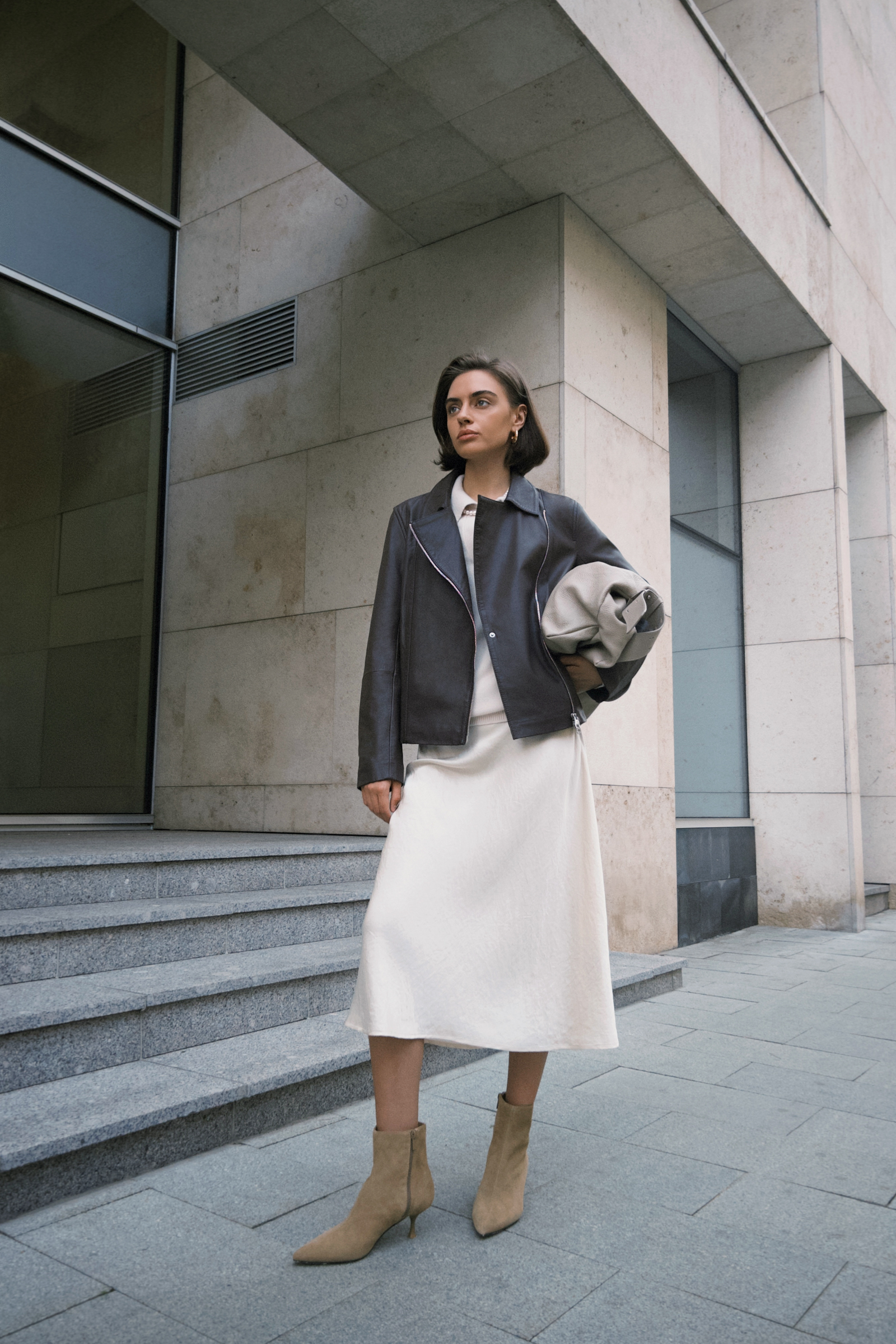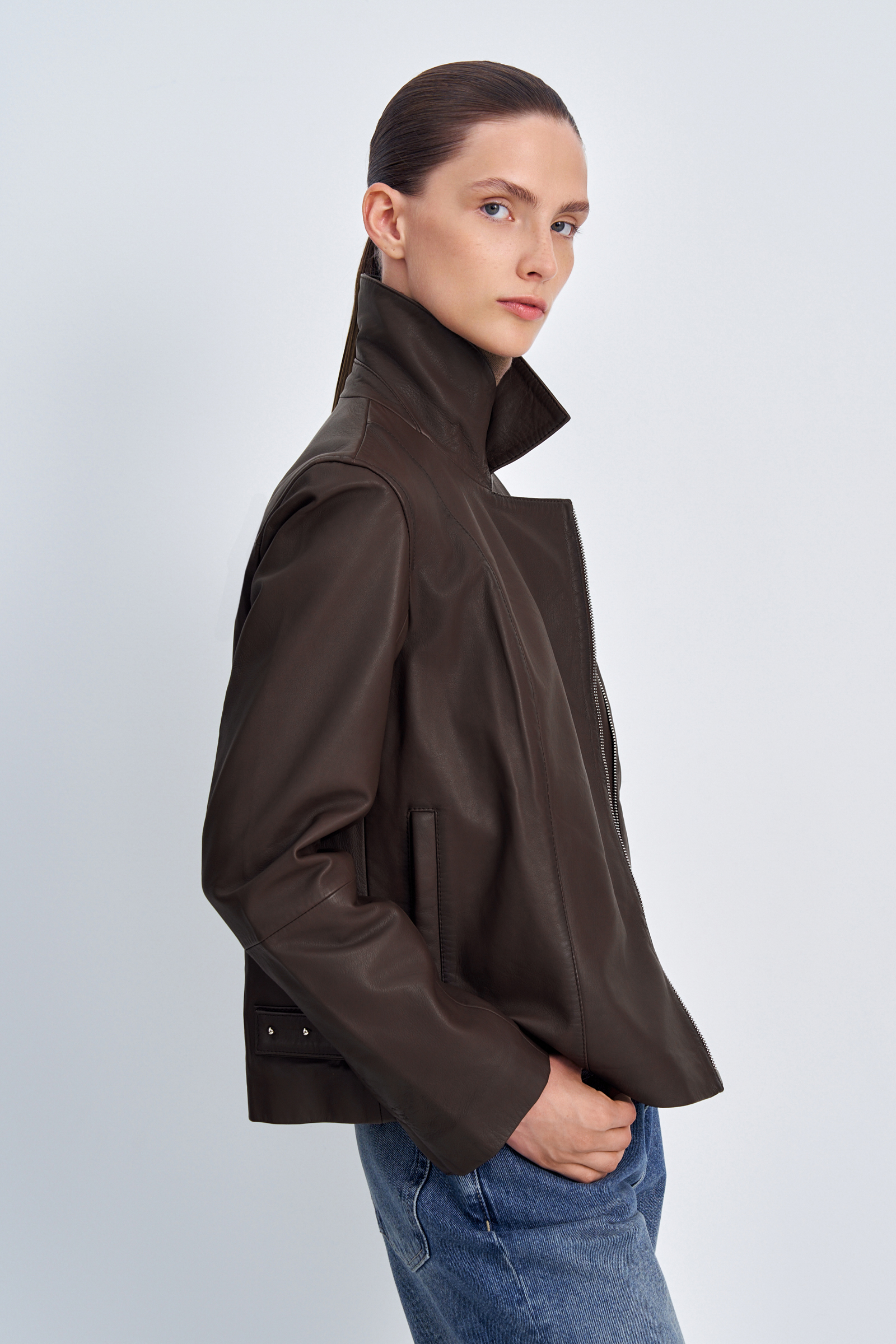 Утепленная кожаная куртка-косуха свободного кроя