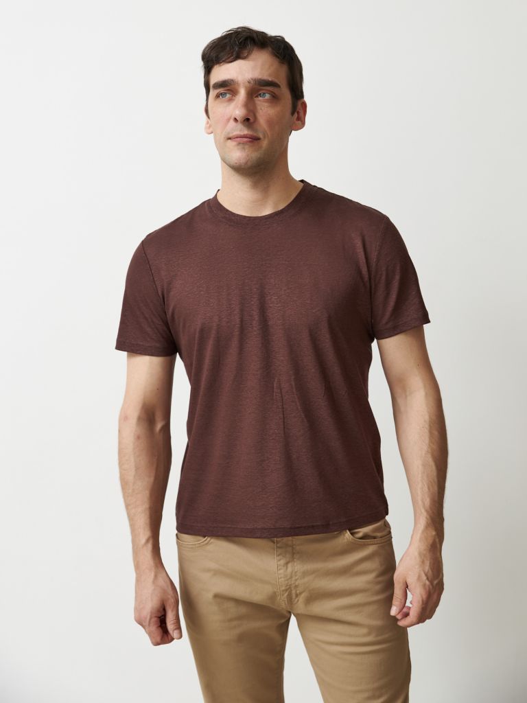 Мужская футболка из крапивы шоколадная — идеальный баланс экологичности, комфорта и стиля. Изготовленная из натуральных волокон крапивы, она сочетает природную прочность с удивительной мягкостью. Материал обладает повышенной воздухопроницаемостью, обеспечивая оптимальный теплообмен даже в жаркие дни, а антибактериальные свойства крапивы предотвращают появление неприятных запахов.Классический крой с аккуратными швами и свободным силуэтом гарантирует свободу движений. Короткий рукав и круглый вырез создают универсальную базу для повседневных образов — сочетайте футболку с льняными брюками, джинсами или шортами. Насыщенный шоколадный оттенок добавляет образу сдержанную элегантность, легко комбинируясь как с нейтральными, так и с яркими цветами.Футболка из крапивы — ответственный выбор для тех, кто ценит экологичность. Натуральные волокна биоразлагаемы, а их производство требует меньше воды по сравнению с хлопком. Прочность материала обеспечивает долгий срок службы, сохраняя форму и цвет после множества стирок.Добавьте в гардероб эту футболку — практичную, дышащую и стильную. Создавайте летние образы с заботой о природе и комфортом для себя.Размерная сетка