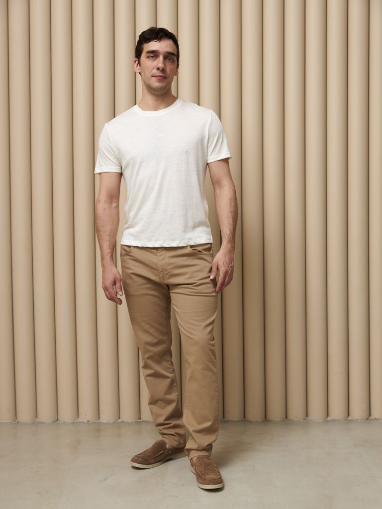 Футболка из натуральной крапивы молочного оттенка — гармония экологичности и повседневного комфорта. Созданная из прочных волокон крапивы, она сочетает мягкость хлопка премиум-класса с повышенной износостойкостью. Материал обеспечивает идеальную циркуляцию воздуха, охлаждая в жару и быстро отводя влагу, а природные антибактериальные свойства сохраняют свежесть даже при активном образе жизни.Свободный крой с классическим круглым вырезом и короткими рукавами подчеркивает непринужденность стиля, гарантируя полную свободу движений. Нежный молочный оттенок, напоминающий сливочные нюансы, легко комбинируется с любой летней базой — от льняных брюк и шорт до джинсов в стиле casual.Крапива — экологичный материал нового поколения: её выращивание требует меньше воды, а волокна полностью биоразлагаемы. Эта футболка — выбор для тех, кто ценит осознанное потребление. Плотная структура ткани устойчива к деформации, сохраняя форму и цвет после множества стирок.Добавьте в гардероб эту дышащую футболку — пусть её природная легкость станет основой стильных летних образов, где забота о планете сочетается с безупречным комфортом.Размерная сетка